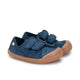 Sapatilhas em lona 100% algodão com duas tiras de fixação em velcro, desenvolvidas segundo o conceito barefoot medium, para respeitar o movimento natural do pé.