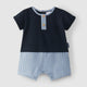 Calções pull-up em tecido 100% algodão de riscas efeito seersucker. Bolsos funcionais nas laterais com costura em cor. Fita decorativa na cintura.